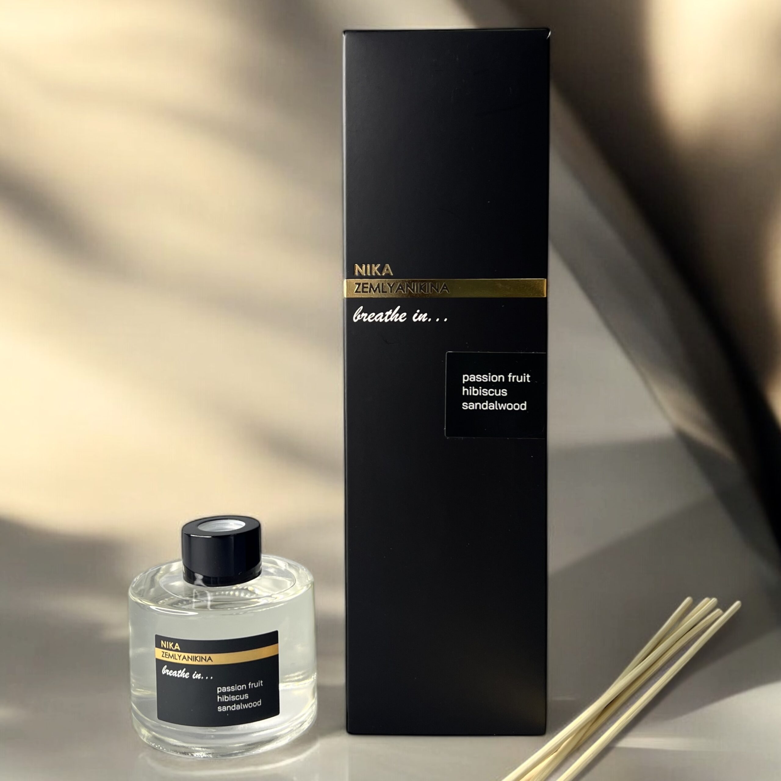 Яскрава, соковита маракуйя відкриває композицію сплеском тропічної свіжості. Серце наповнюється чарівними пелюстками гібіскусу—тонким, злегка пряним, з медовими нюансами. База композиції—глибокий, насичений сандал. Його теплі деревні акорди створюють відчуття затишку, гармонійно обволікаючи аромат вершковими, трохи димними нотами. Разом ці складові переплітаються в ідеальну симфонію—свіжу, квіткову та чуттєву, що огортає простір аурою спокою, легкості та спокусливого комфорту.