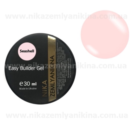 Easy gel Nika Zemlyanikina Seashell - це дуже міцний моделюючий гель, має молочно - рожевий відтінок, середня ступінь перекриття. Ідеально камуфлює натуральну пластину та підходить для різноманітних дизайнів, покриття гель-лаком та як самостійне покриття.