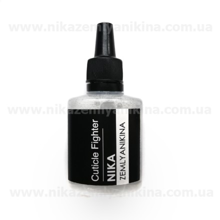 Ремувер для кутикули Cuticle Fighter Nika Zemlyanikina - лужний вітамінізований засіб для видалення птерігію та кутикули. Легко видаляє ороговілості на шкірі, одночасно пом'якшуючи її живі клітини. При регулярному застосуванні кутикула стає більш акуратною.