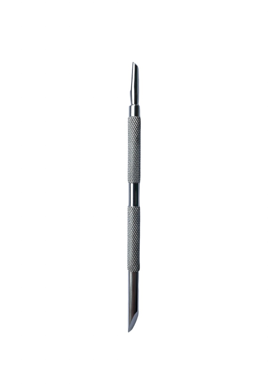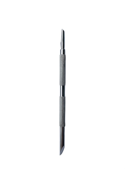Шабер Scraper by Nika Zemlyanikina незамінний інструмент в арсеналі майстра для виконання класичного манікюру. Шабер має форму апельсинової палочки, що допомогає відсунути кутикулу перед манікюром або покриття гель-лаком. Друга сторона сторона шаберу має форму топірця, який бездоганно впорається з птерігієм, при цьому не травмує нігтьову пластину. Універсальний інструмент підходить для манікюру та педикюру в будь-якій техніці. Оптимальний розмір та рельєфна ручка перешкоджає ковзанню в руках майстра. Інструмент виготовлений з високоякісної нержавіючої сталі та підлягає будь-яким видам стерилізації та дезинфекції. Шабер вже заточений та готовий до роботи.